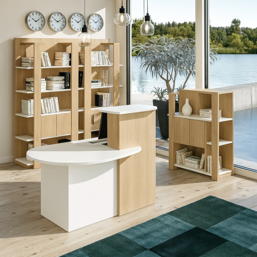 La banque d’accueil Bornix réunit en un seul meuble design et fonctionnalité. Que ce soit pour accueillir vos visiteurs, installer un point de réception ou intégrer une caisse enregistreuse, elle offre une solution pratique, même dans les espaces réduits.